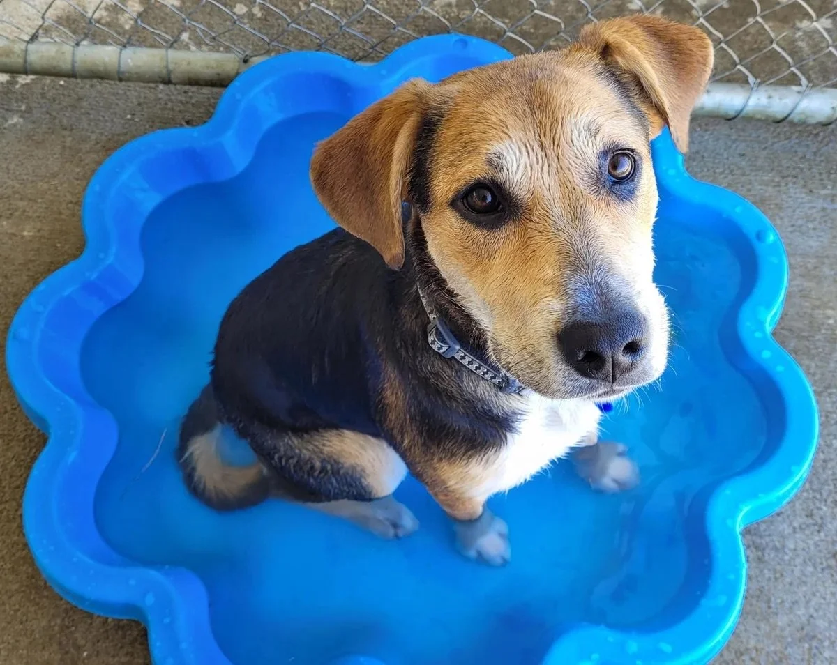Woof Bonnie is a huntaway cross born in 2021 and rescued from Nelson SPCA. She likes snacks and swimming.
